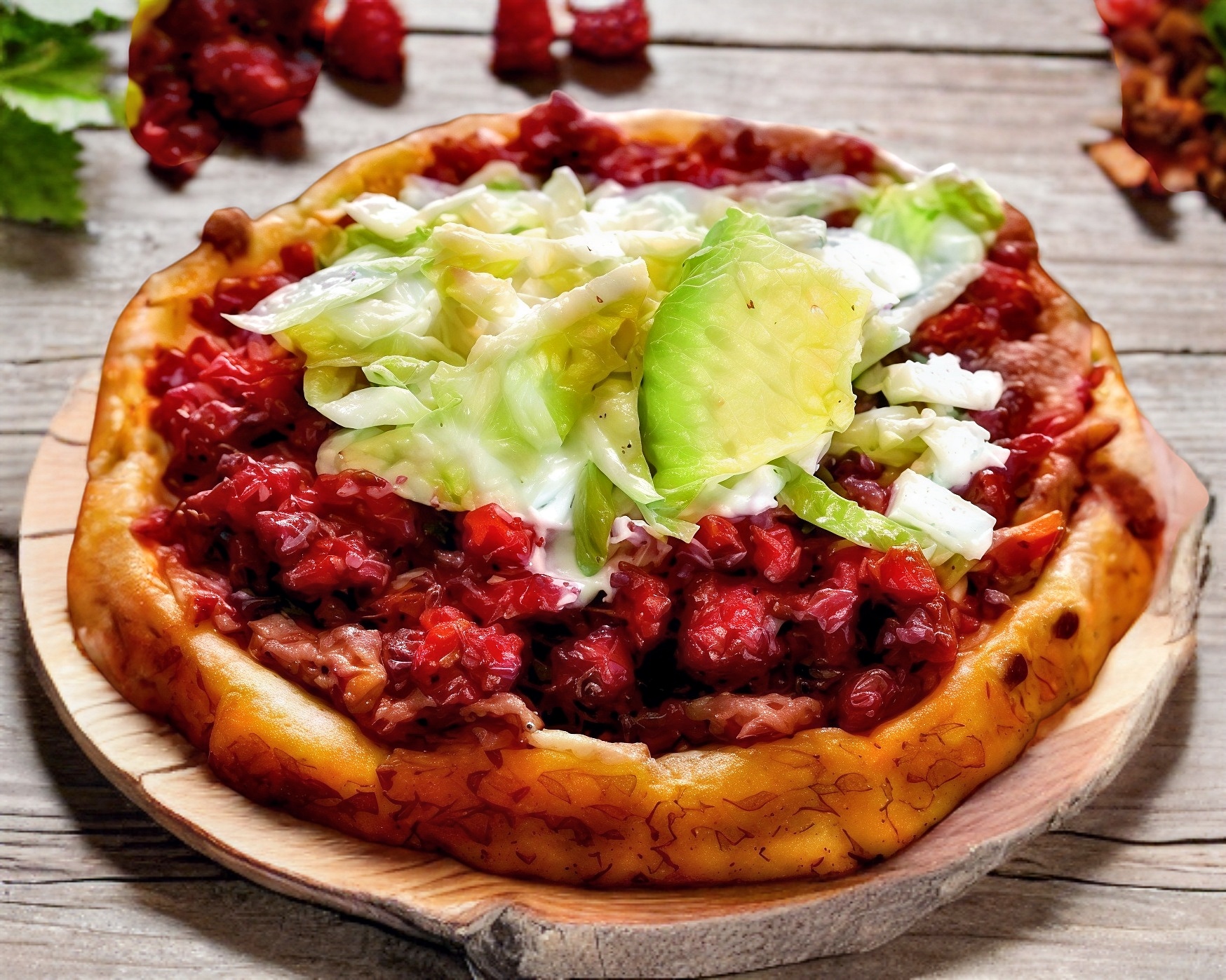 2 panuchos de maiz rellenos de longaniza ahumada, lechuga, cebolla, tomate crema y queso,