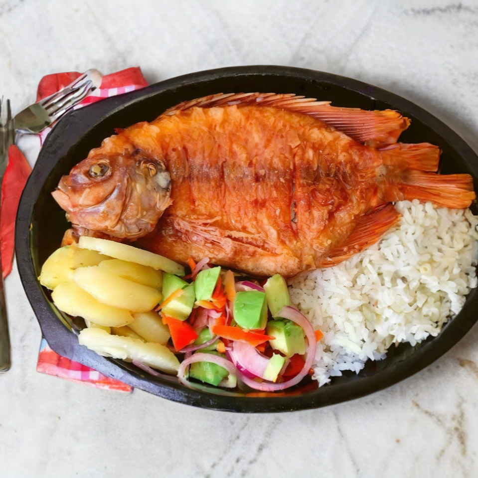 Mojarra frita con complementos
