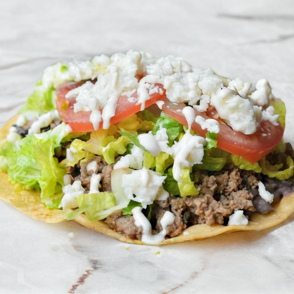 4 tostadas con lechuga queso crema salsa carne