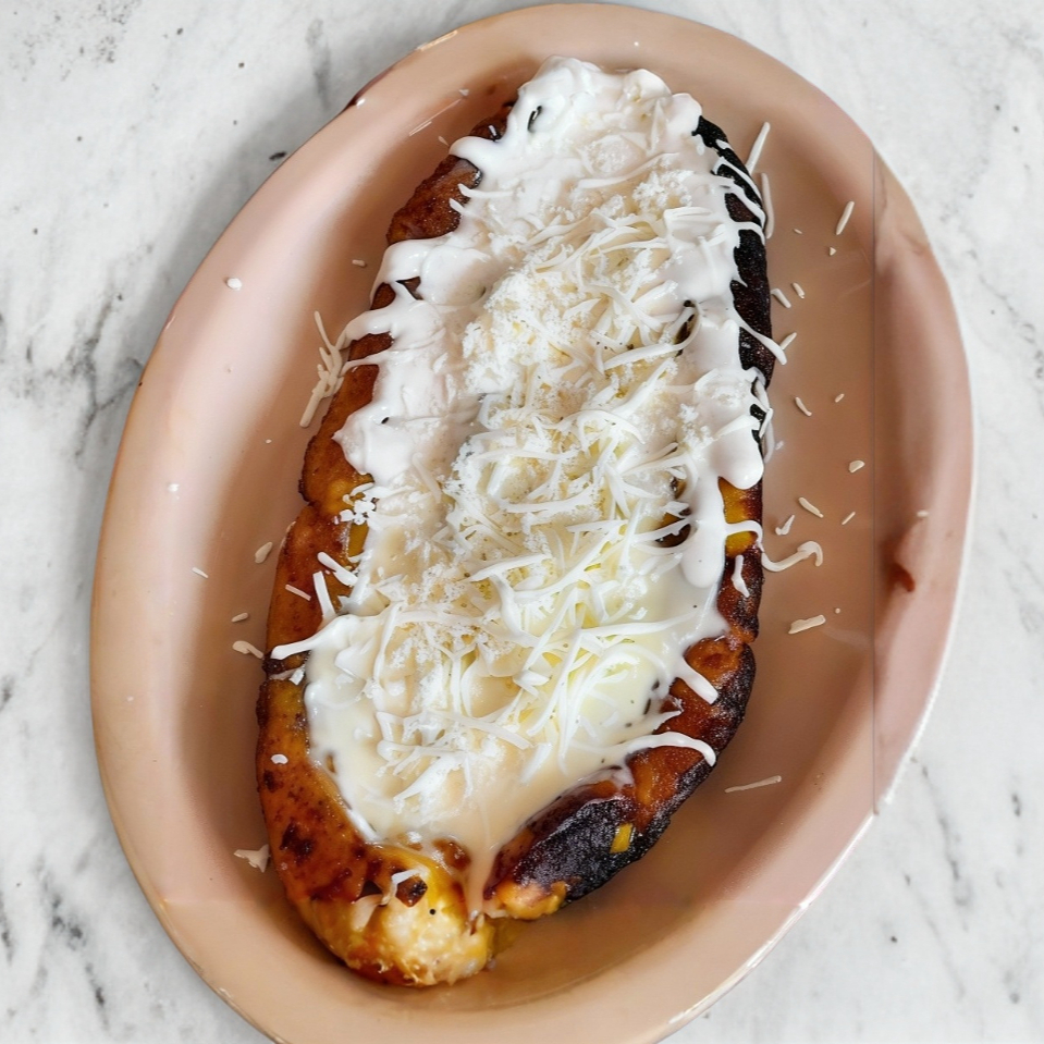 Plátano frito con crema y queso