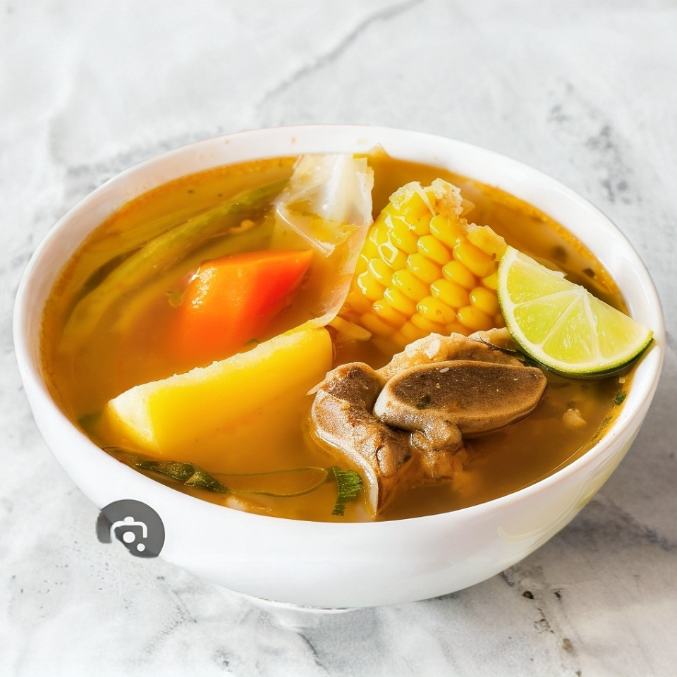 Panza de res, garbanzo, zanahoria, chayote y ejote