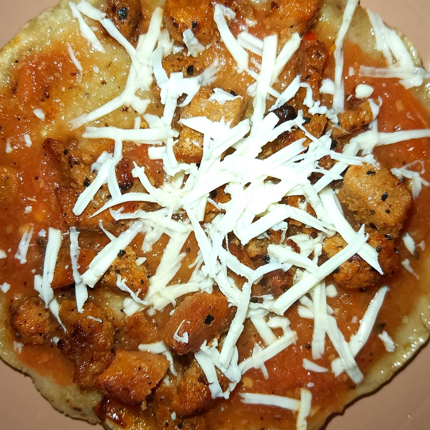 Memela con salsa roja , carne (deshebrada, pollo, bistec,adobada) y queso