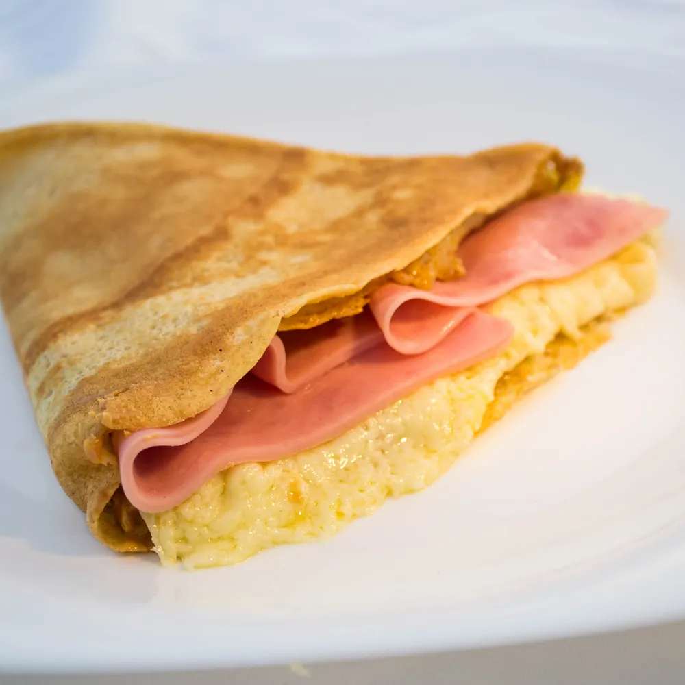 Incluye jamón, queso manchego, piña y salsa de tomate.