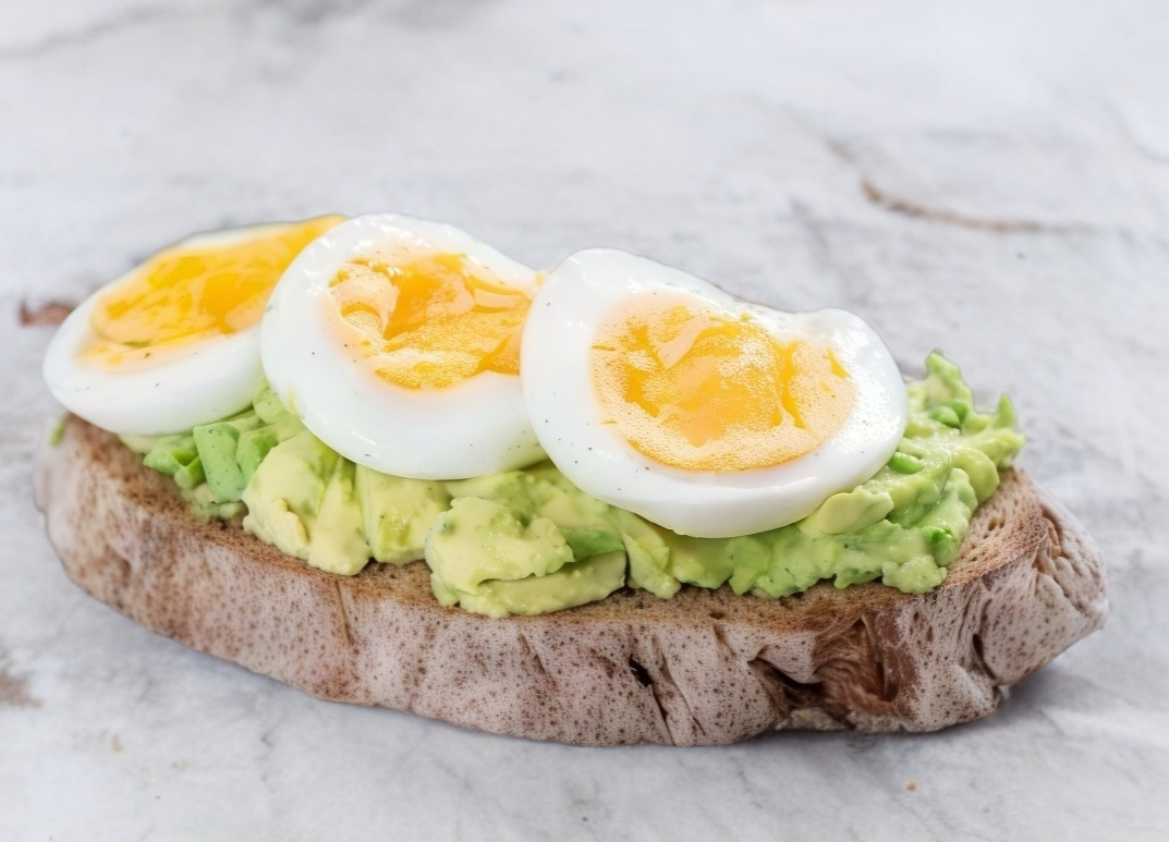 Pan Artesanal Multigrano Tostado, Huevo Estrellado, Salsa Macha , Tomate Cherry y Aguacate.