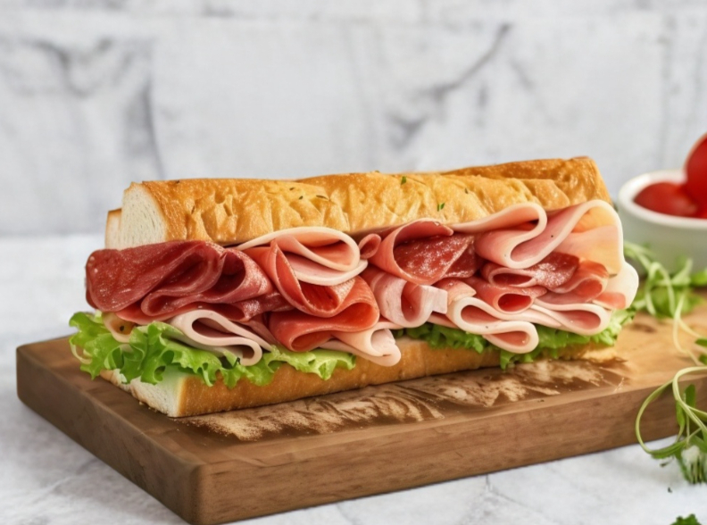 Jamón, salami, mayonesa, tomate cherry, espinaca, acompañado con papas sal de mar.