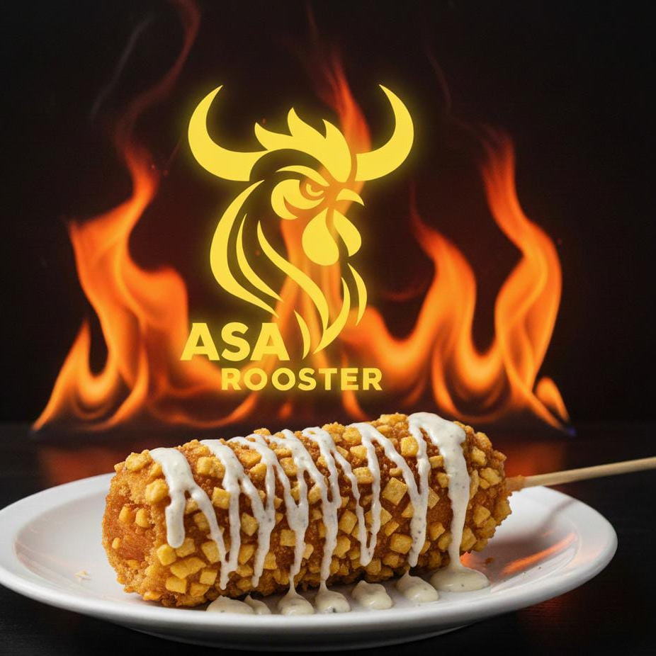 Banderilla Coreana Papa de salchicha de Res, acompañada con ranch y catsup mas salsa de su elección