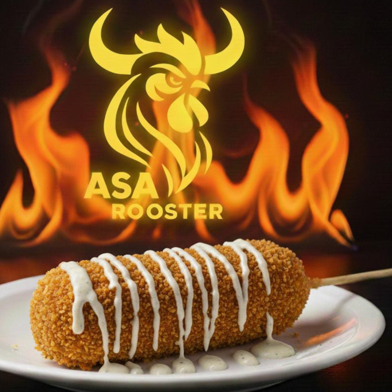 Banderilla Coreana Clasica de salchicha de Res, acompañada con ranch y catsup mas salsa de su elección