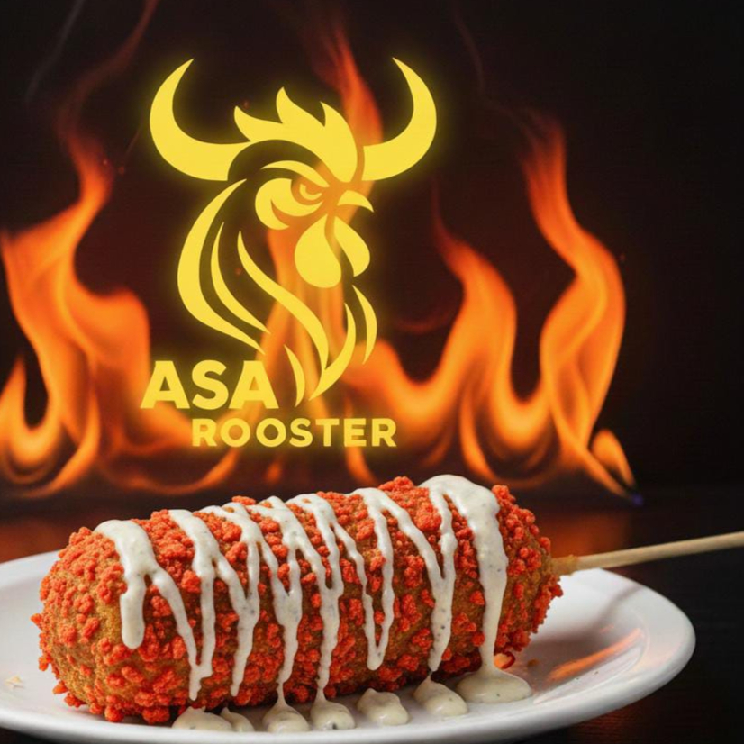 Banderilla Coreana chetos Flamin hot de salchicha de Res, acompañada con ranch y catsup mas salsa de su elección