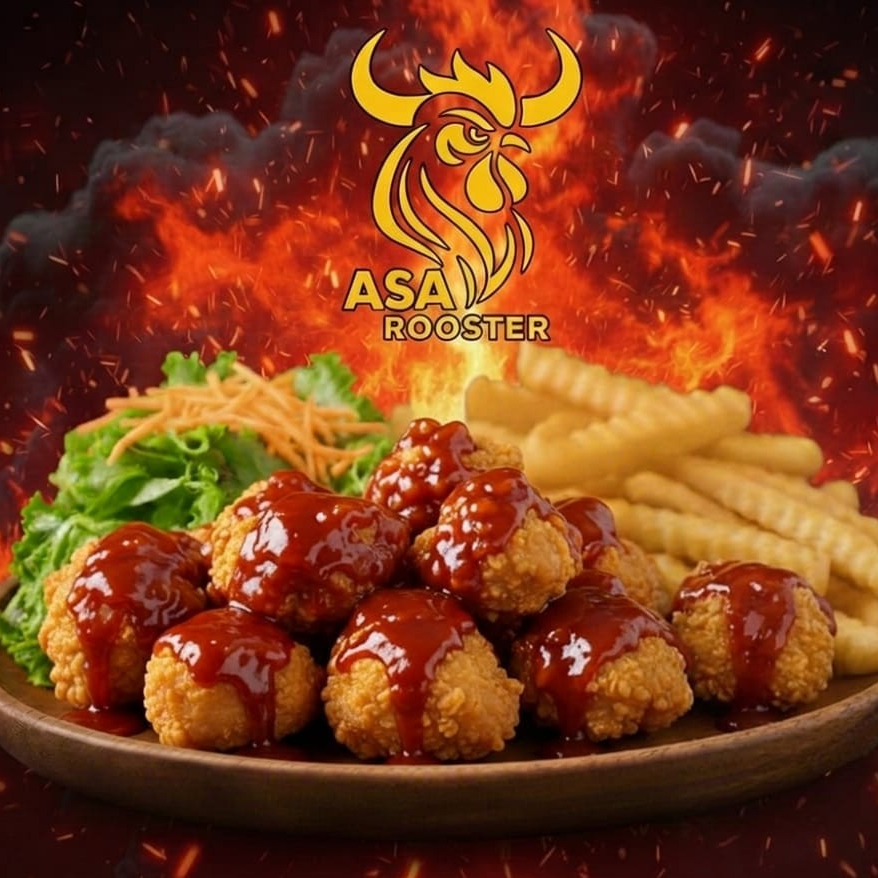 250G de deliciosos Boneless Bañados en Salsa NARANJA, acompañado de ensalada y papas fritas, enviamos catsup ranch y queso chedar