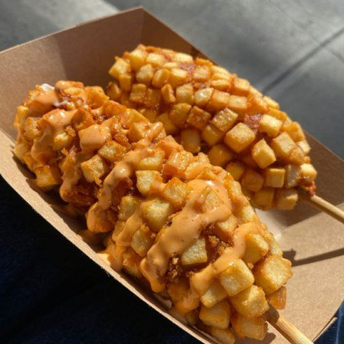 Queso,salchicha, papa en trocitos, panko y aderezos