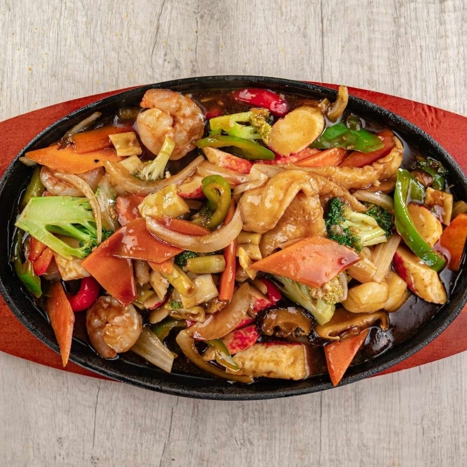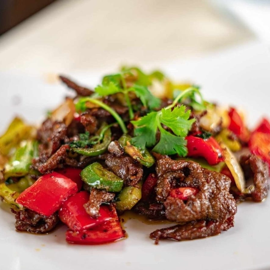 Steak Estilo Szechuan con vegetales (plato caliente)