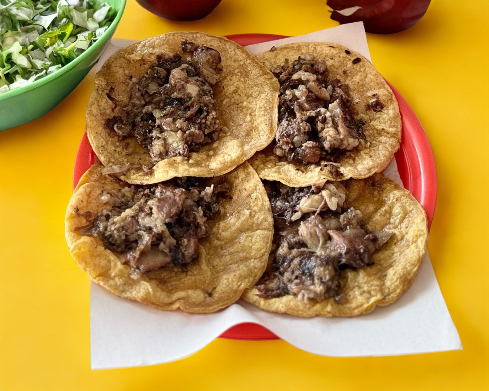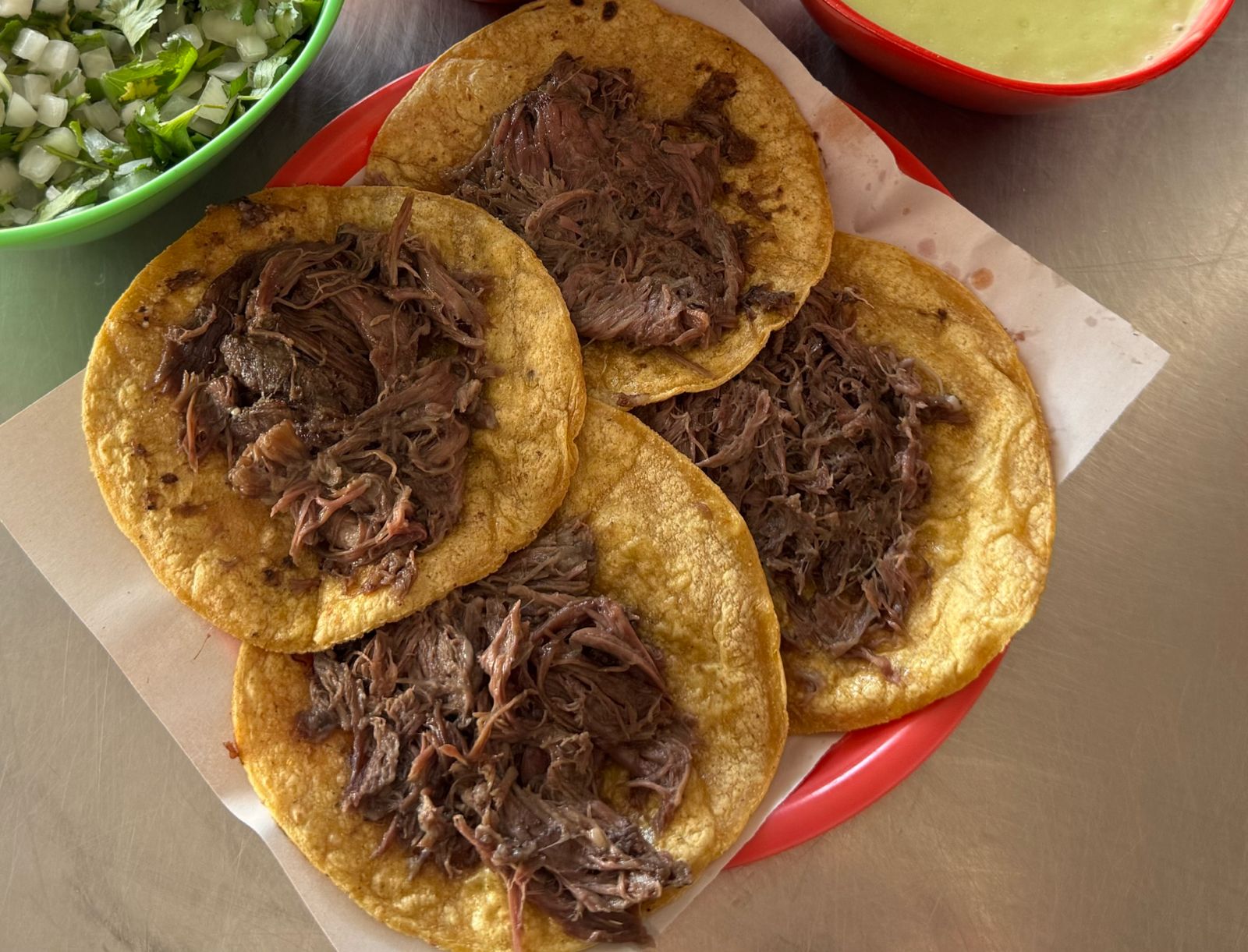Orden de 4 tacos, con su cebolla y salsa