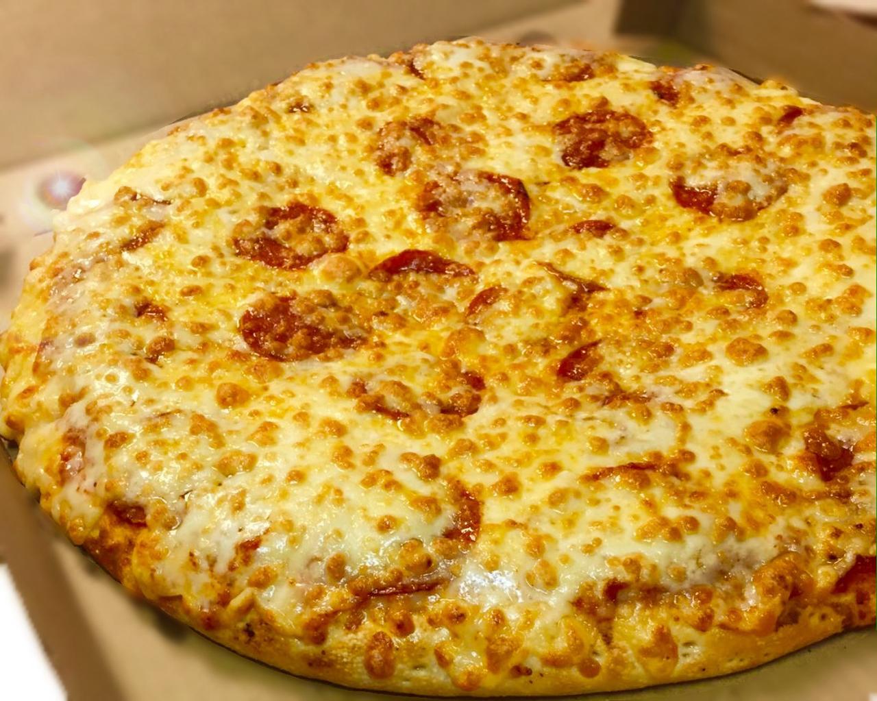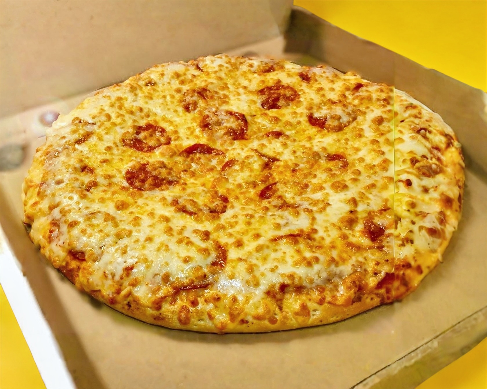 Pizza Pepperoni de 8 rebanadas de 14 pulgadas -Pepperoni abajo de una porción generosa de mezcla de Quesos.