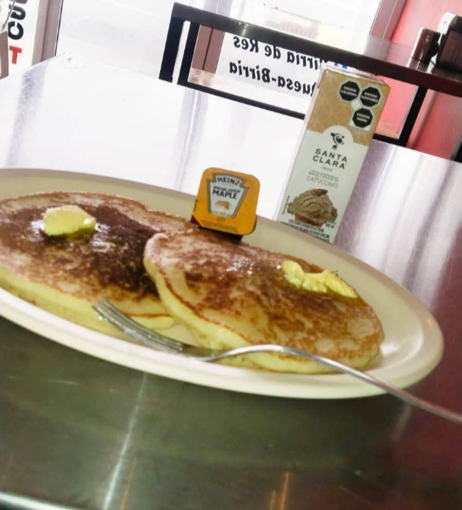 2 huevos al gusto, frijoles puercos, 1 guisado a elegir, queso fresco, 2 tortillas harina estilo Sonora