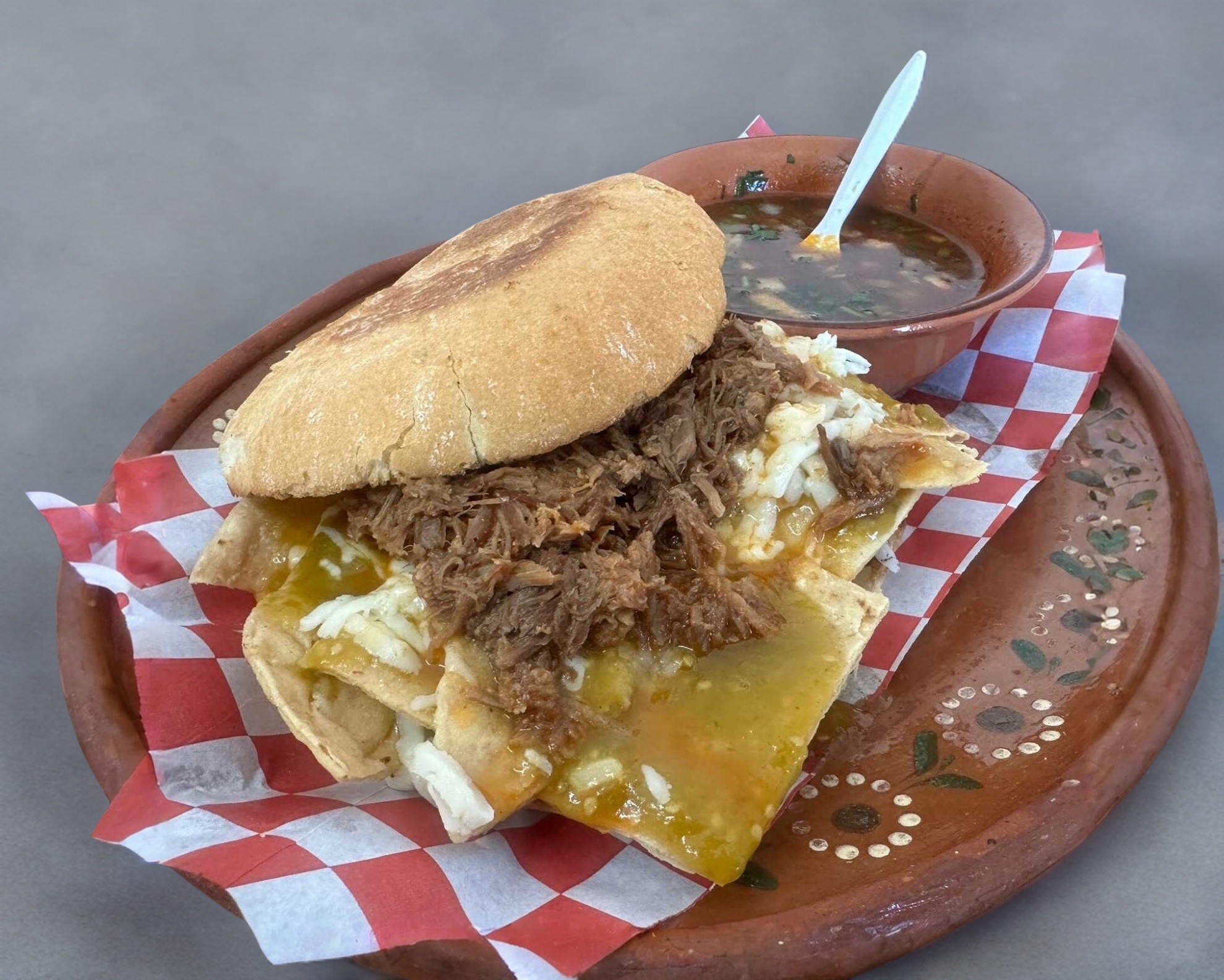 Pan, mantequilla, Birria y Consome