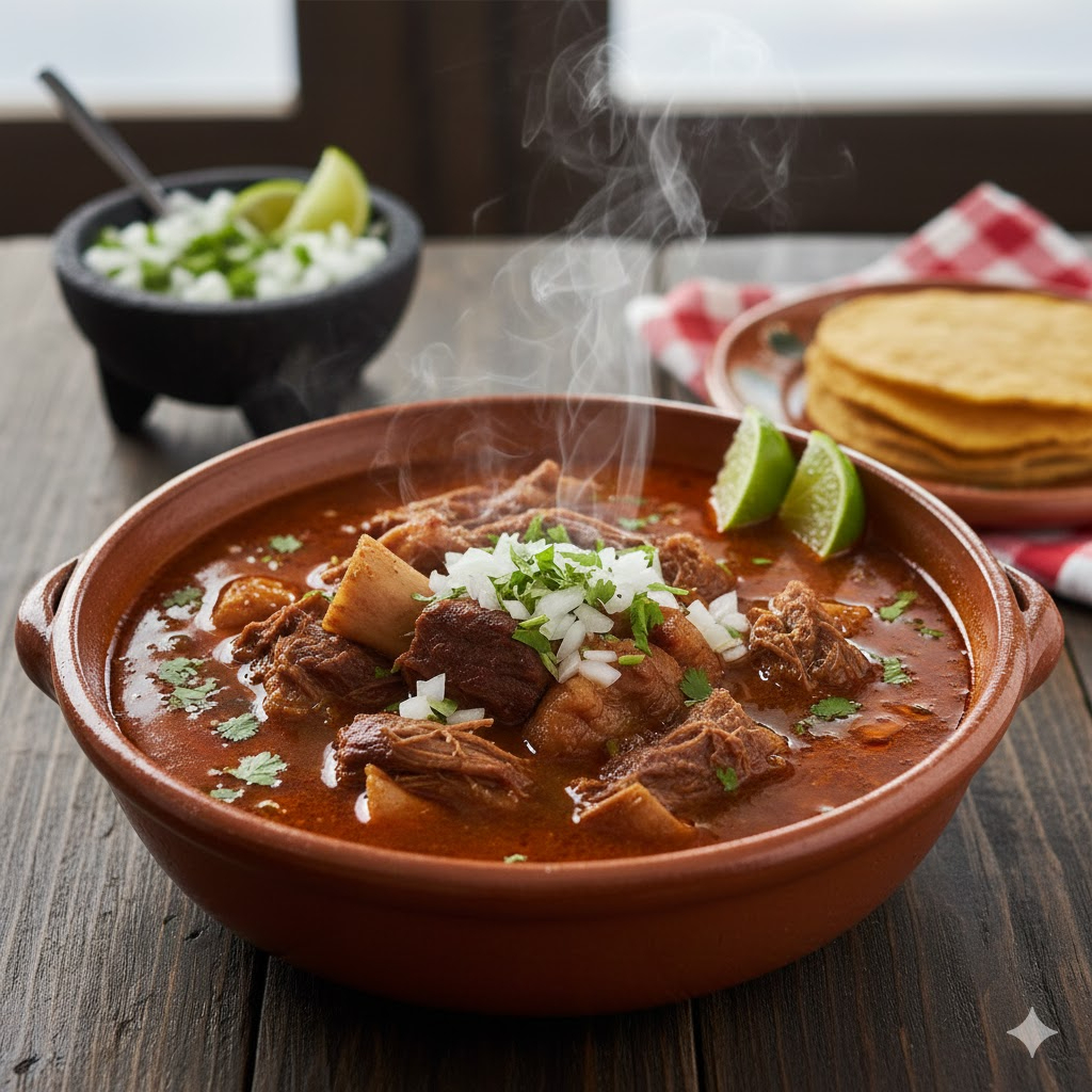 1 Litro de Birria de res utilizando ingredientes de alta calidad con Tortillas, Salsa, Verdura y Limon