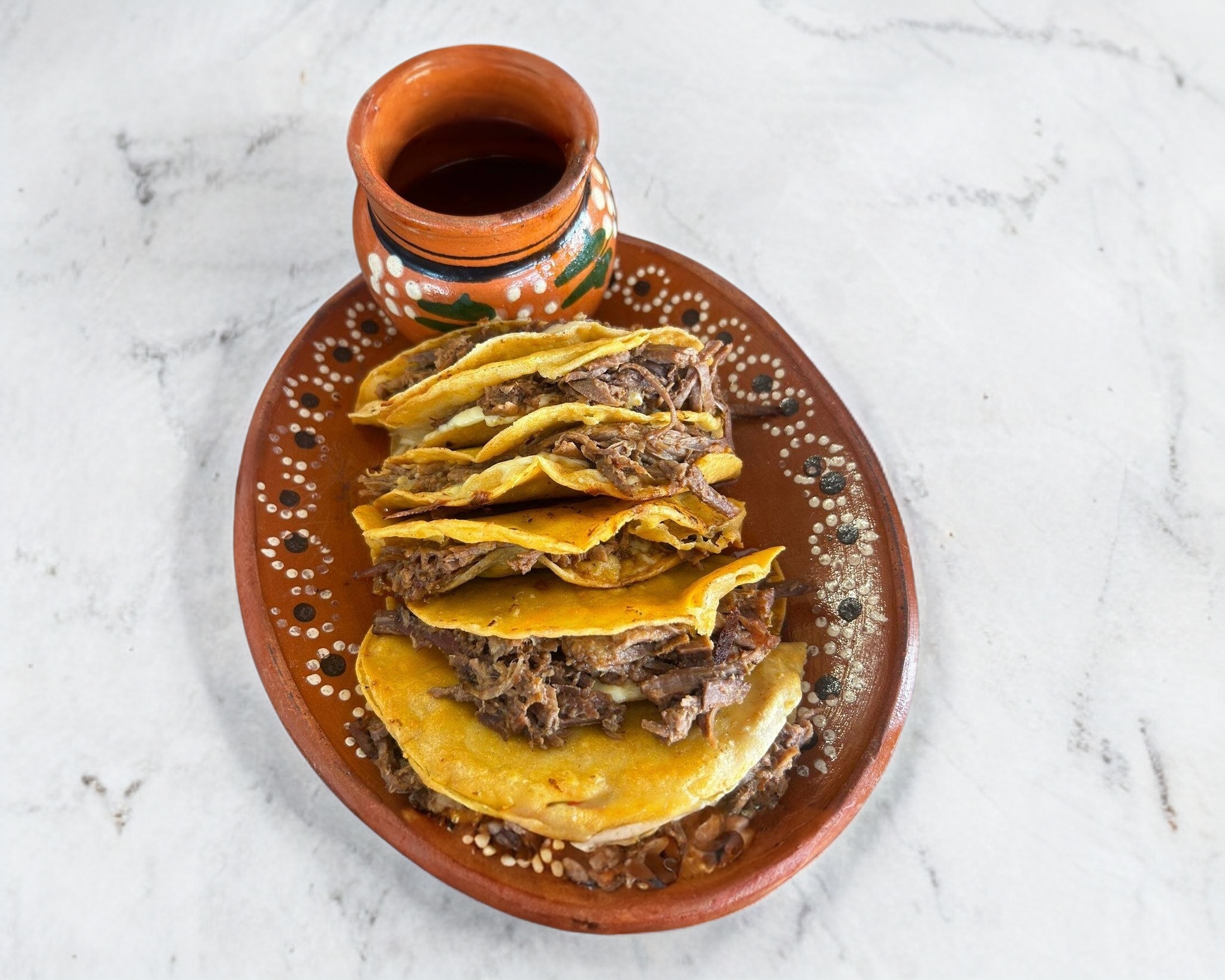 COMBO 4 TACOS DORADOS DE BIRRIA + CONSOME 8 Oz