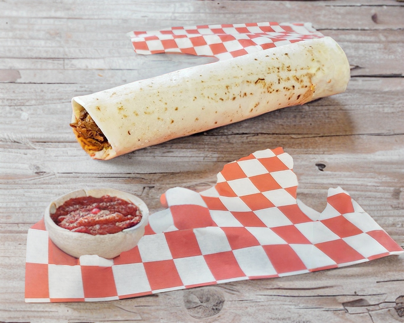 Tortilla de harina doblada a la mitad, con birria(carne) y queso. Dorada. El precio es por pieza. Se incluye medio litro de consome (sin carne puro caldo) a partir de 3 pzs..