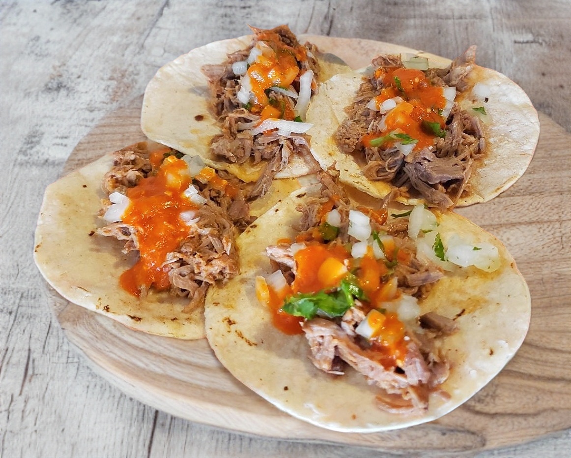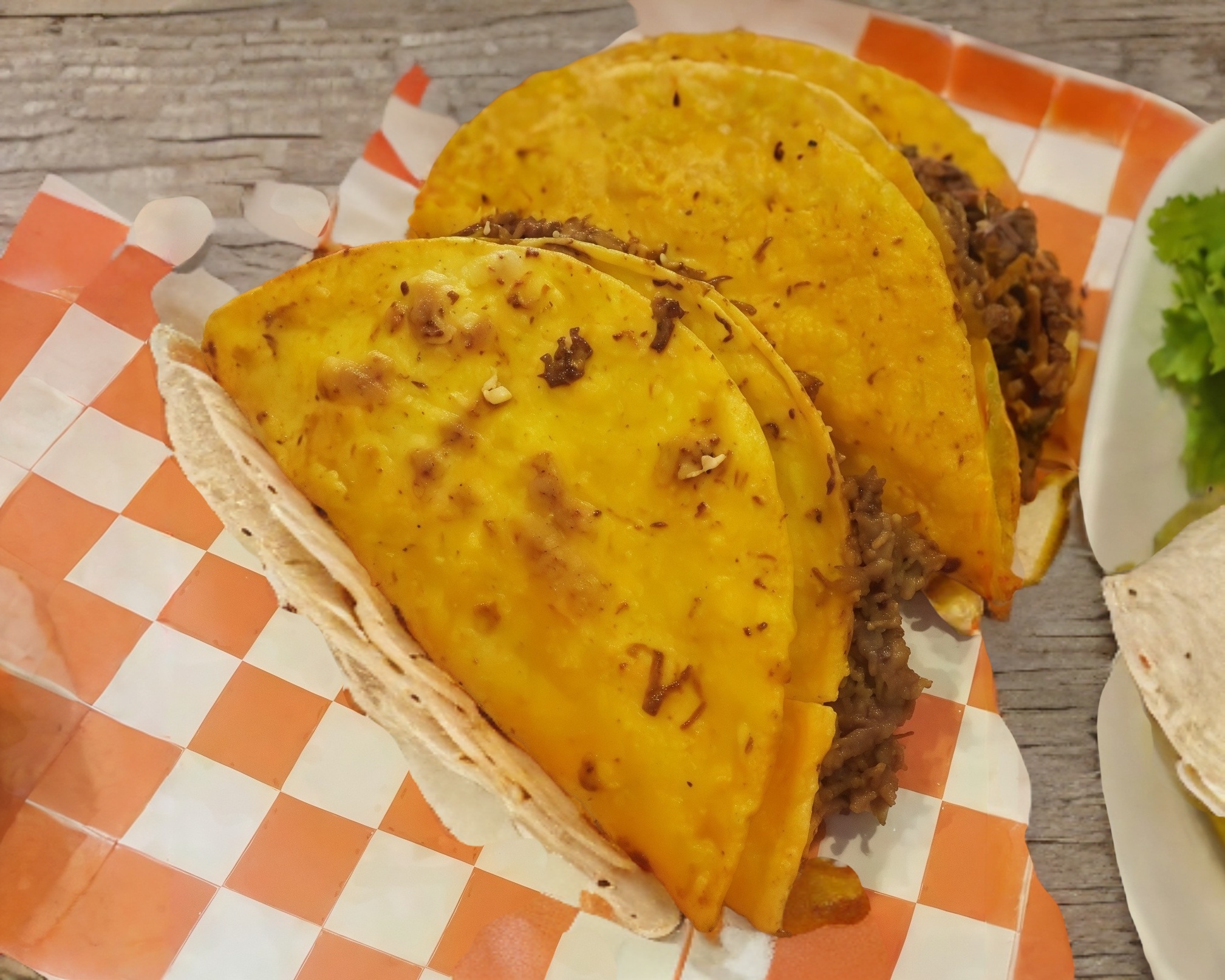 Cuatro tacos de birria con la tortilla blandita. No incluye consome.
