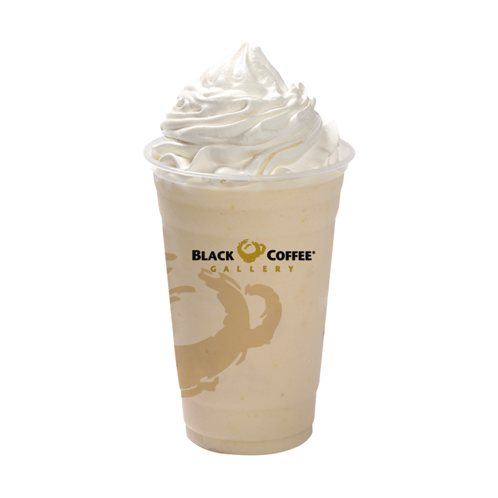 Delicioso Frappé de café con leche, hielos, chocolate blanco y crema batida.