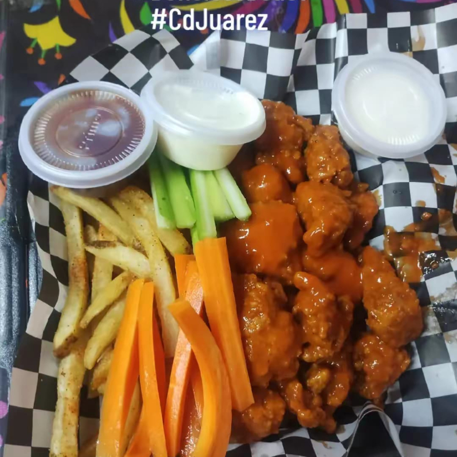 375gr alitas 375gr boneless 250gr papas aderezos y verduras 2 refrescos