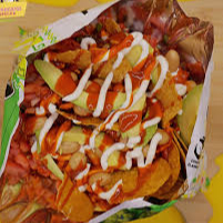 TOSTITOS MORADOS,CREMA,REPOLLO,CUERITOS,AGUACATE,SALSA BALENTINA