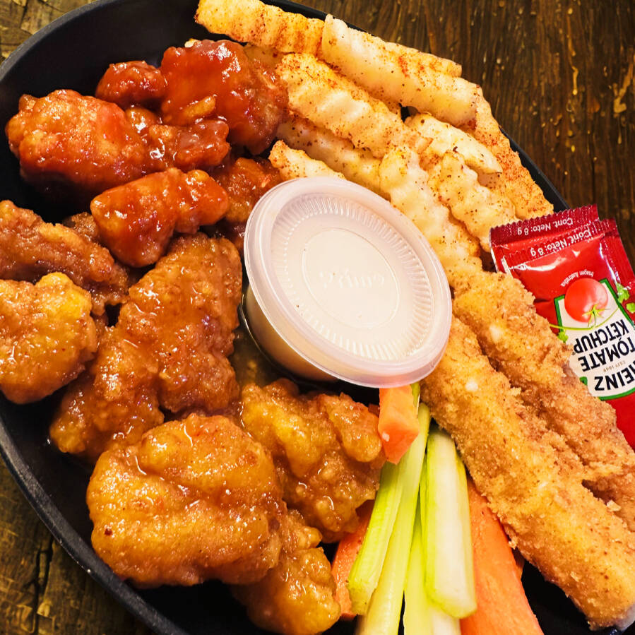 INCLUYE: 250 G DE BONELESS CON SALSA A ELEGIR, 200 G DE PAPAS, 2 DEDOS DE QUESO, APIO, ZANAHORIA Y ADEREZOS.