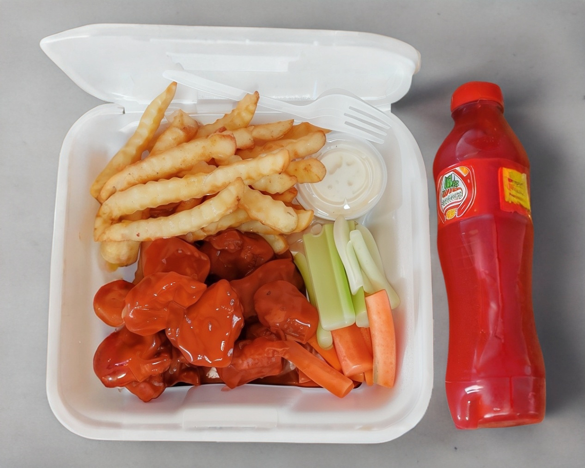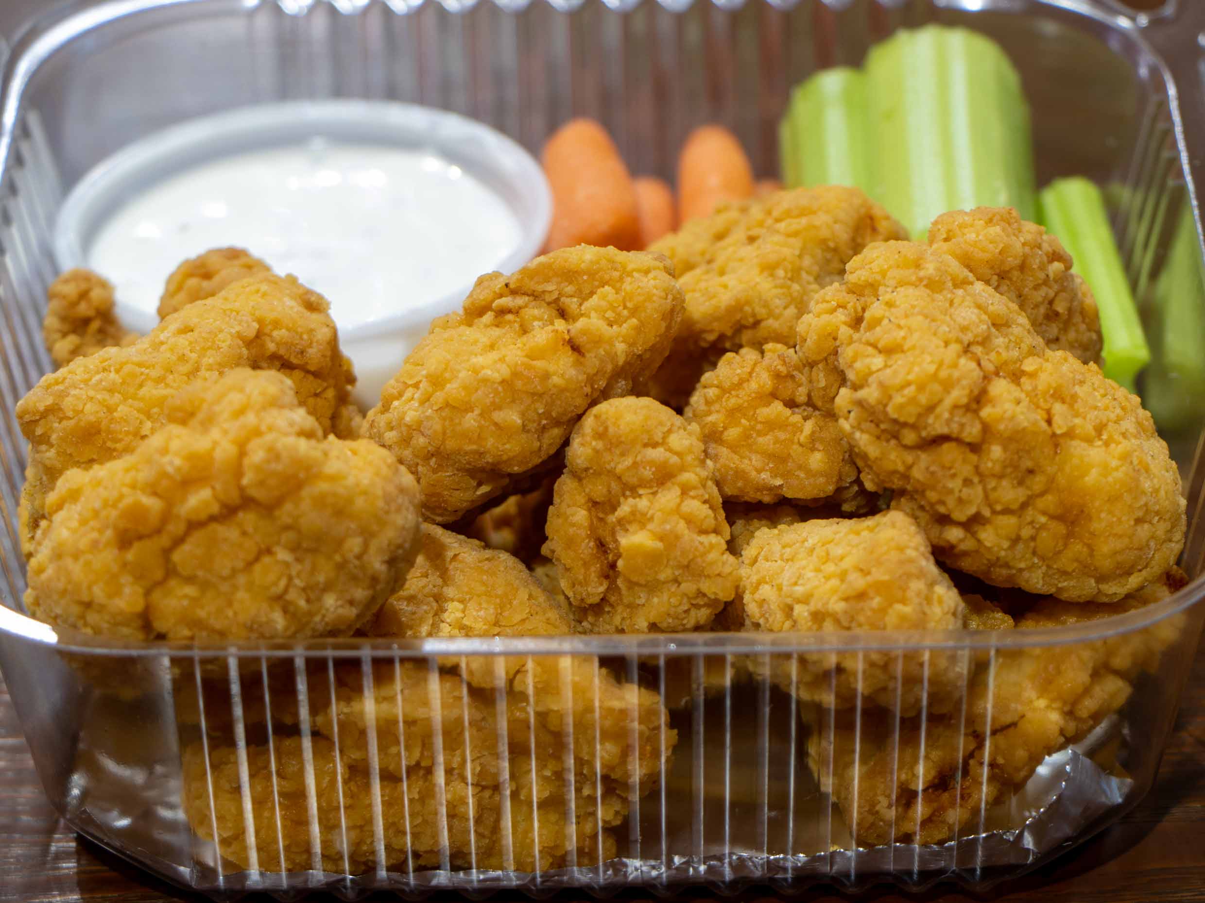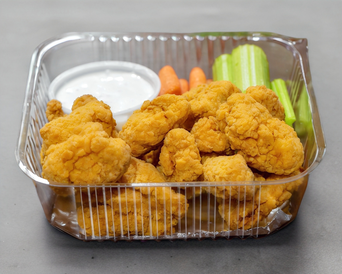 285gr. de boneless bañados en tu salsa preferida, acompañados de zanahorias, apio y aderezo ranch.
