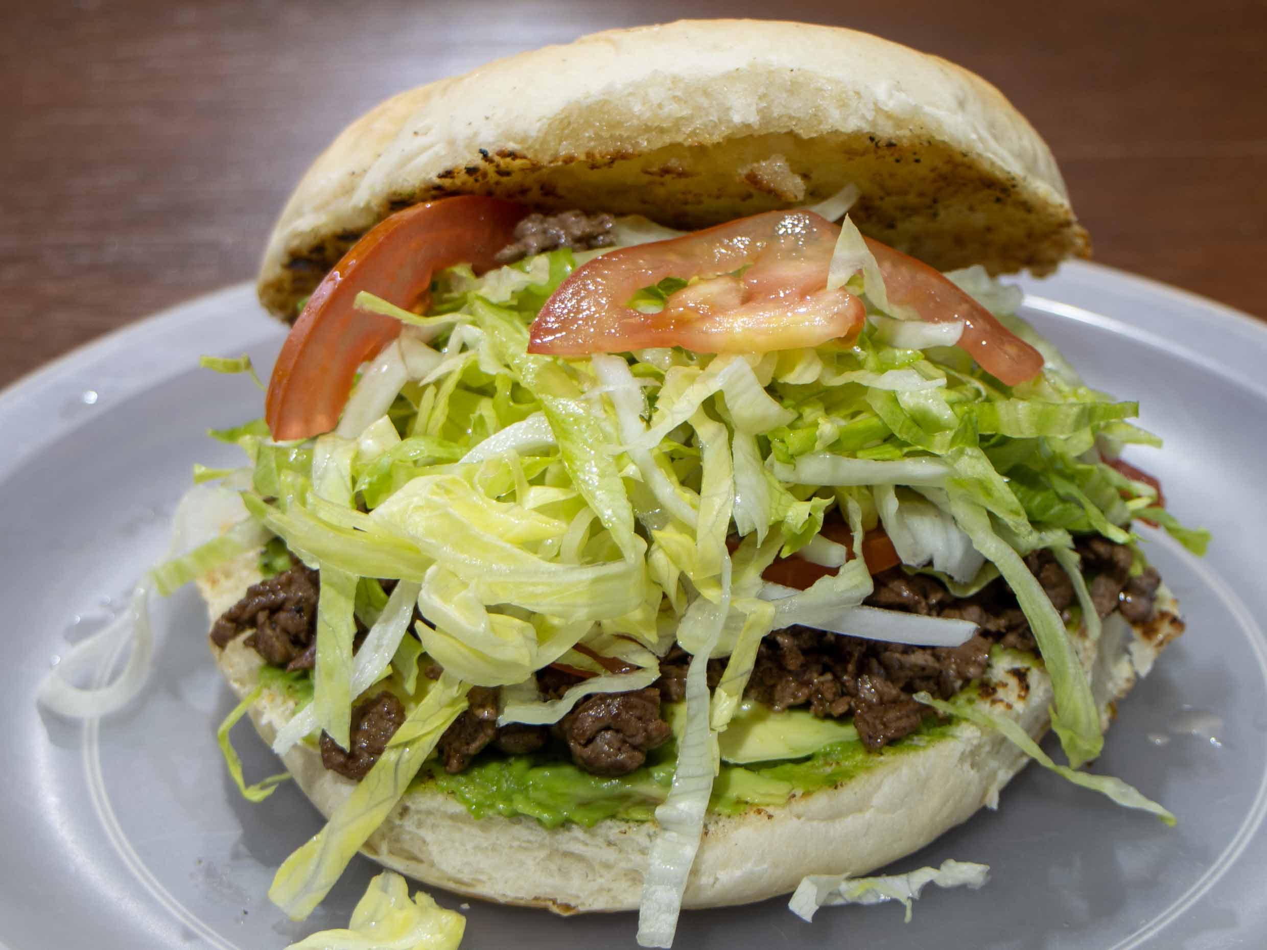 Lechuga, tomate, cebolla guisada, aguacate y mayonesa.