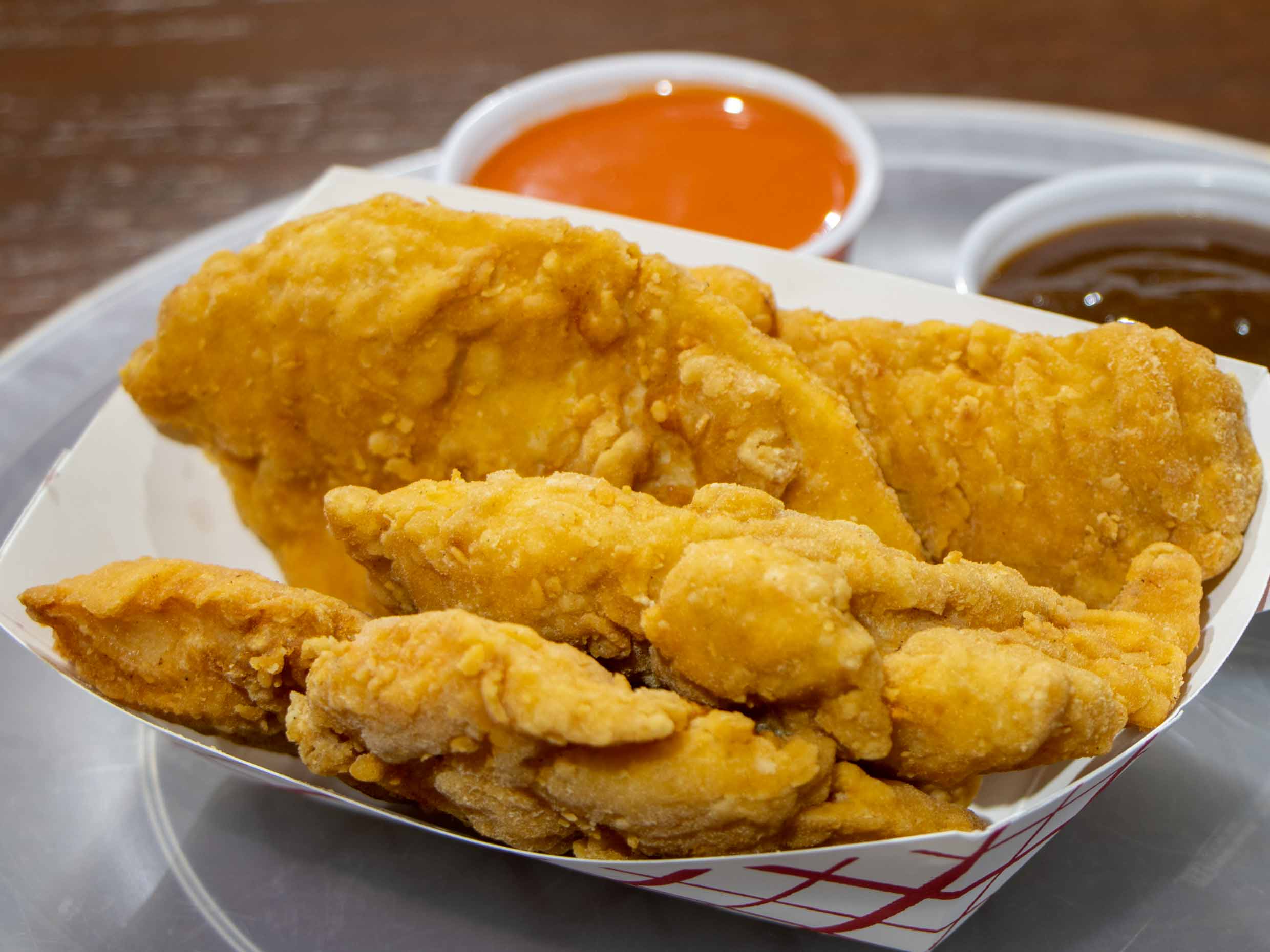 300 gramos de fajitas de pollo empanizadas acompañadas de aderezo ranch o salsa de su preferencia.