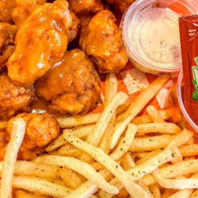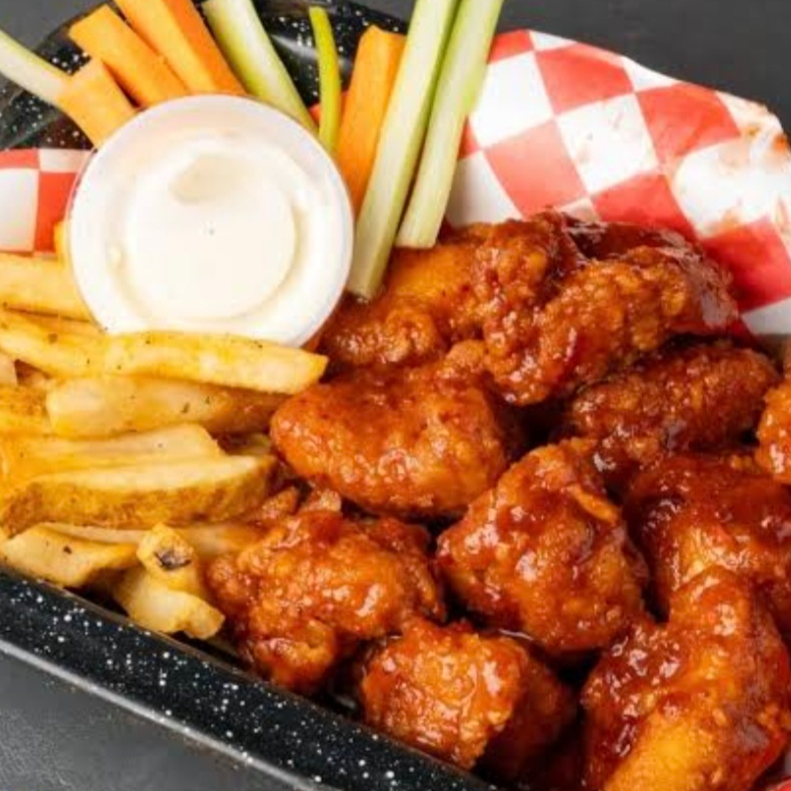 300 G Boneless naturales, 100 G papas, zanahoria, apio, ranch.