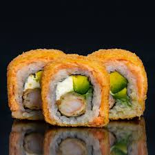 Rollo de Sushi Empanizado, Con Camaron, Aguacate, Queso Philadelphia y Pepino