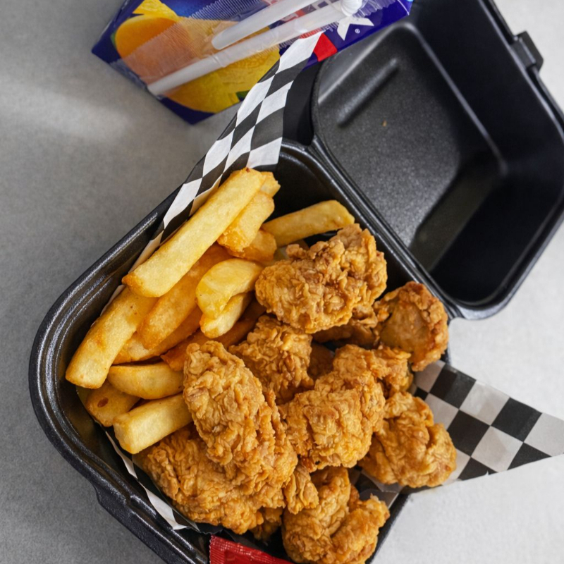Porcion de boneless , papas y jugo