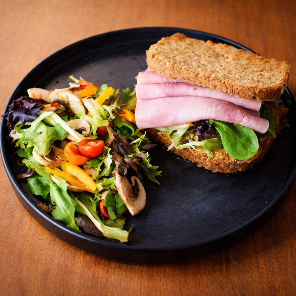 Sándwich de Jamón : pan hecho en el negocio con Jamón, queso y mayonesa de la casa