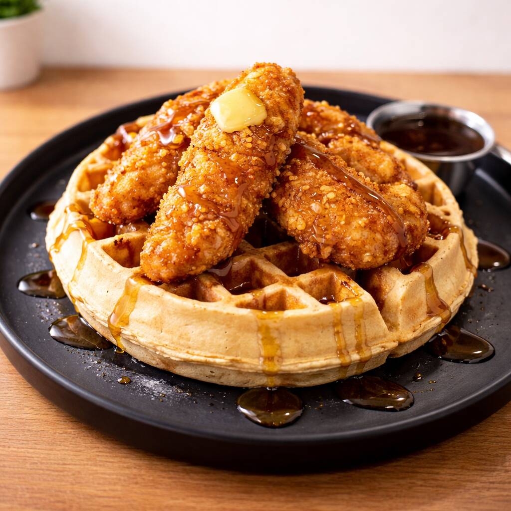 Pollo frito crujiente por fuera y suave por dentro, acompañado de waffles esponjosos que equilibran perfecto lo dulce y lo salado. Un clásico reconfortante que siempre se antoja.