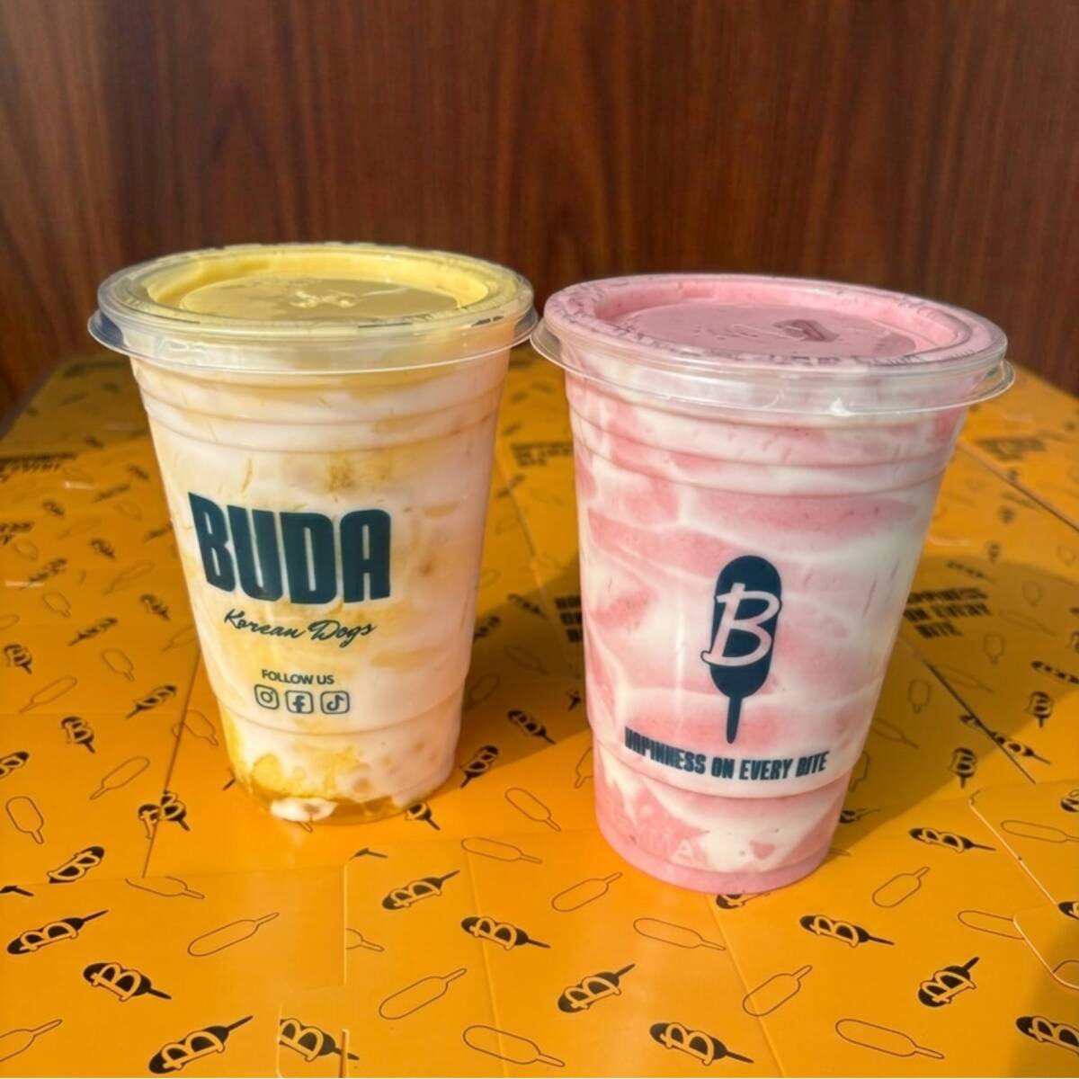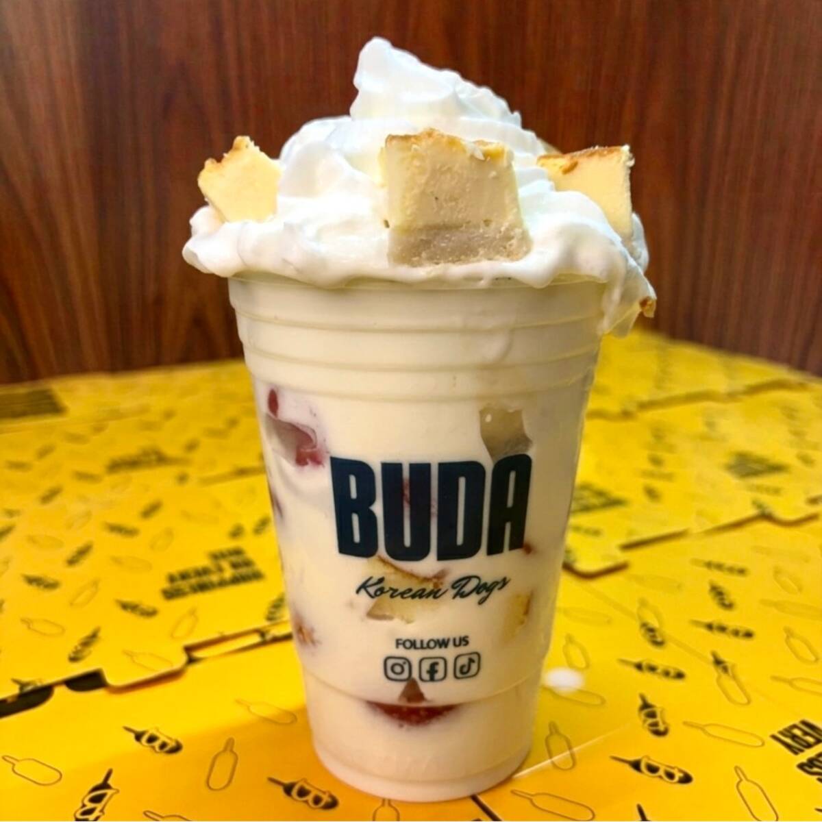 Pulpa de fruta mezclado con yogurt y popping pearl.