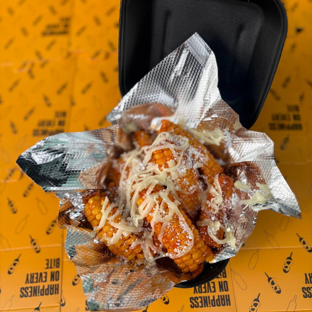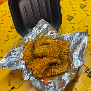 2 elotes amarillos cortados y cocidos con la salsa de tu eleccion y aderezos.