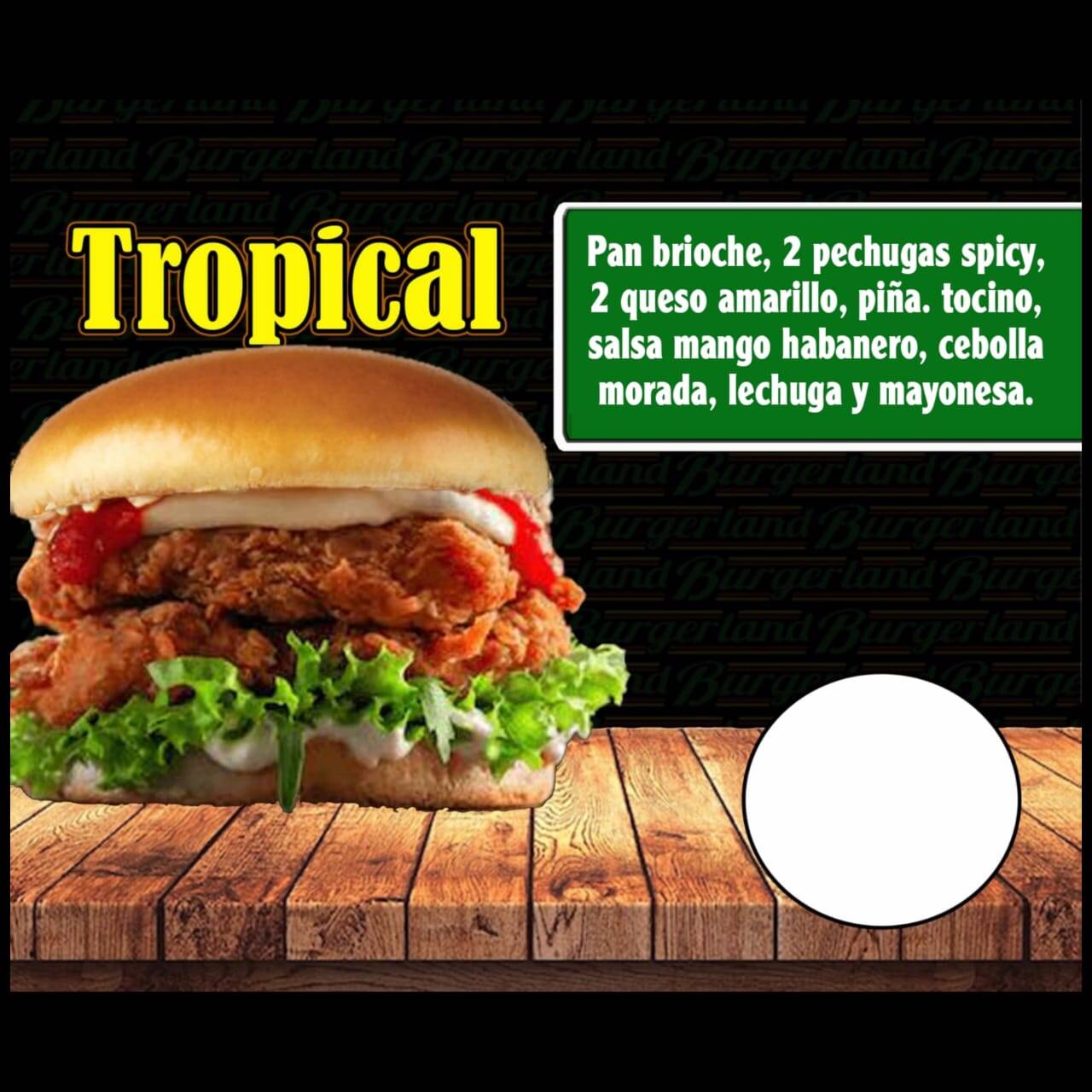 pan brioche, 2 pechuga spicy, queso, piña, tocino, salsa mango habanero, lechuga, cebolla morada, mayonesa.