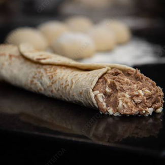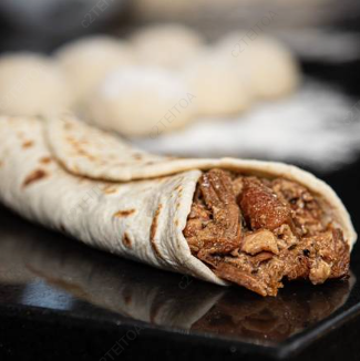Burritos en tortilla de harina y lengua guisada al estilo casero.