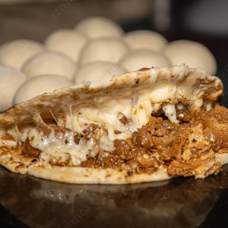 Quesadilla de bistec en salsa ranchera con queso.