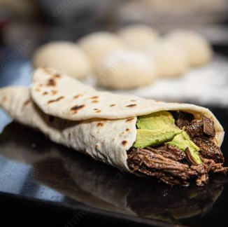 Burritos en tortilla de harina y brisket ahumado con aguacate.