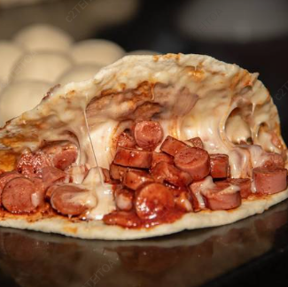 Quesadilla con winnie (salchicha) en salsa de tomate con queso.