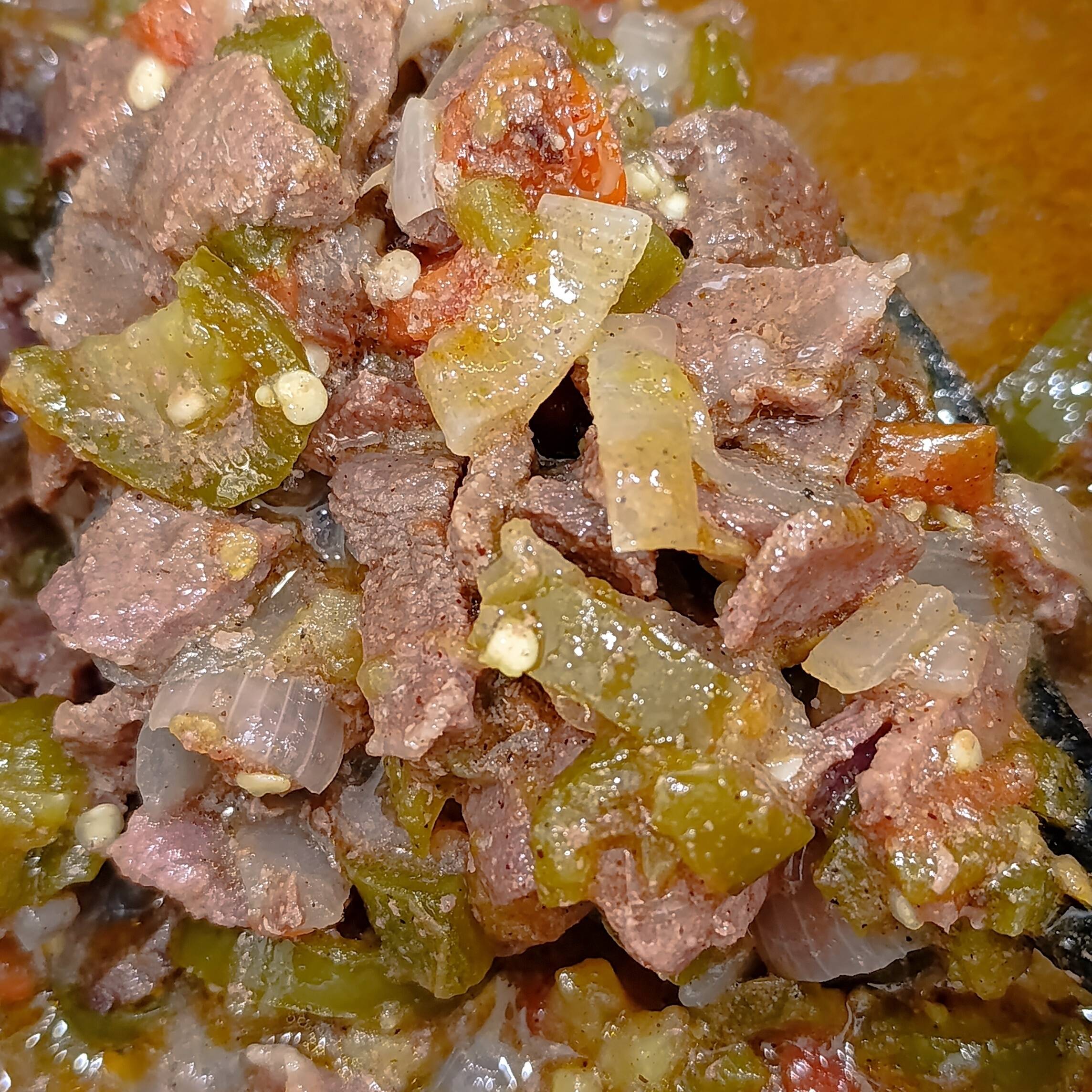 CARNE DE BISTEC, CON CHILE, TOMATE Y CEBOLLA, CON TOQUE ESPECIALES.