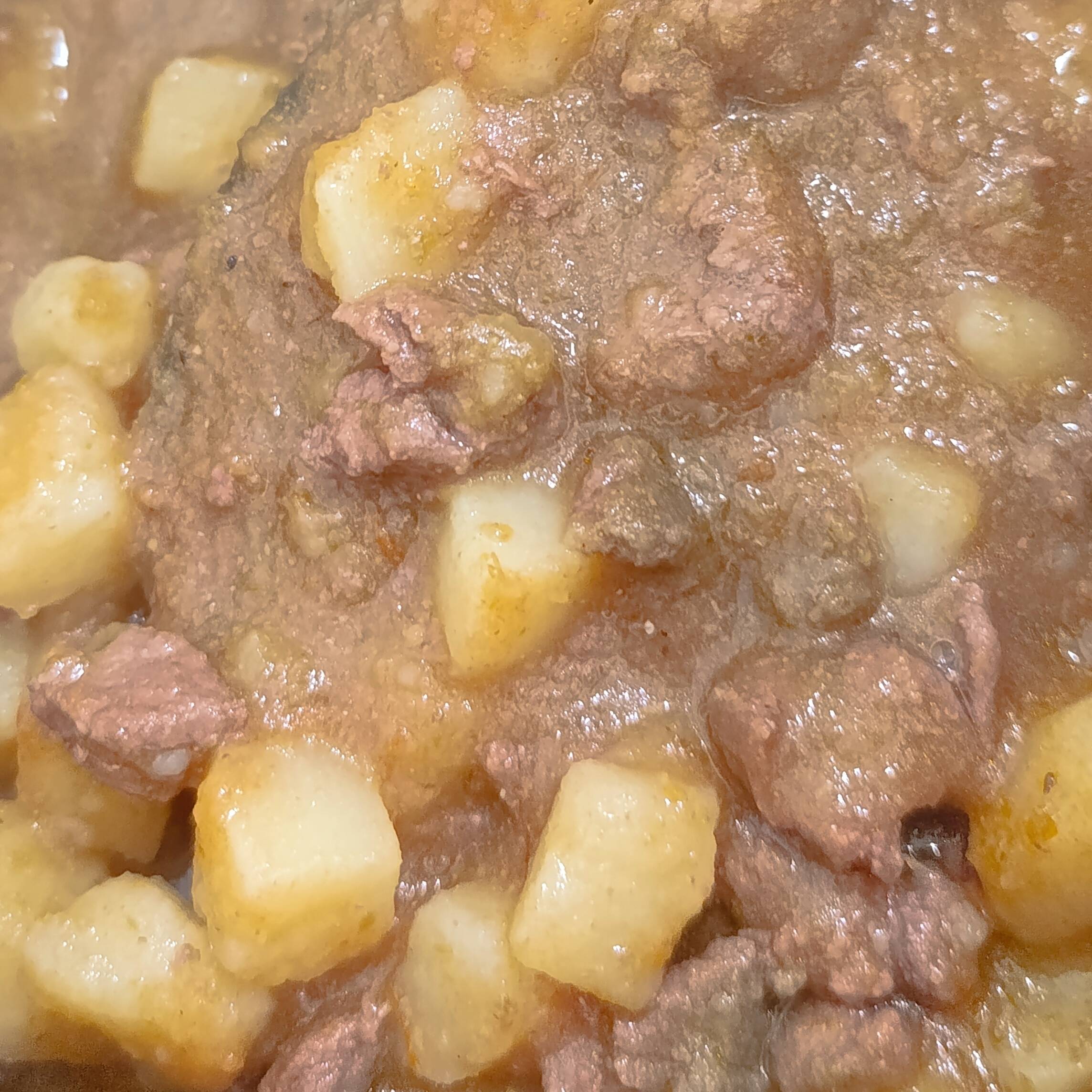 CARNE PULPA, CON PAPAS EN SALSA DE CHILE COLORADO