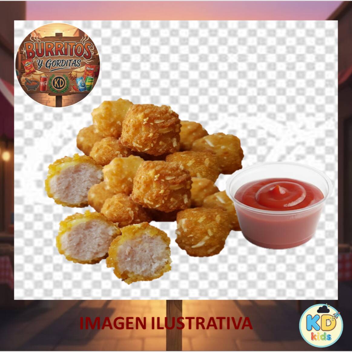 125g apox de palomitas de pollo, catsup,