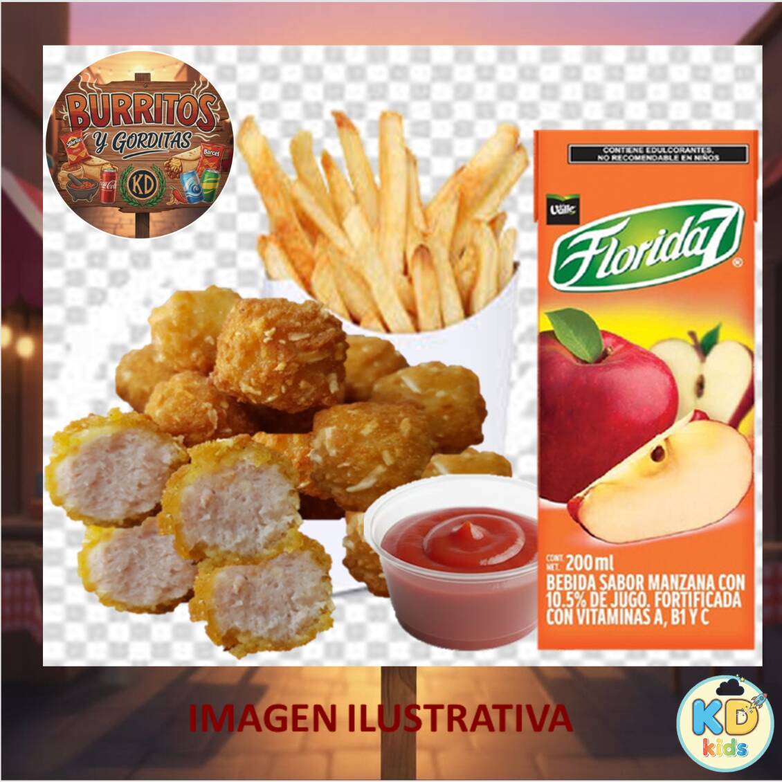 Hamburguesa Kd Kids*1 + Florida 7 Sabor Manzana 200 Ml*1