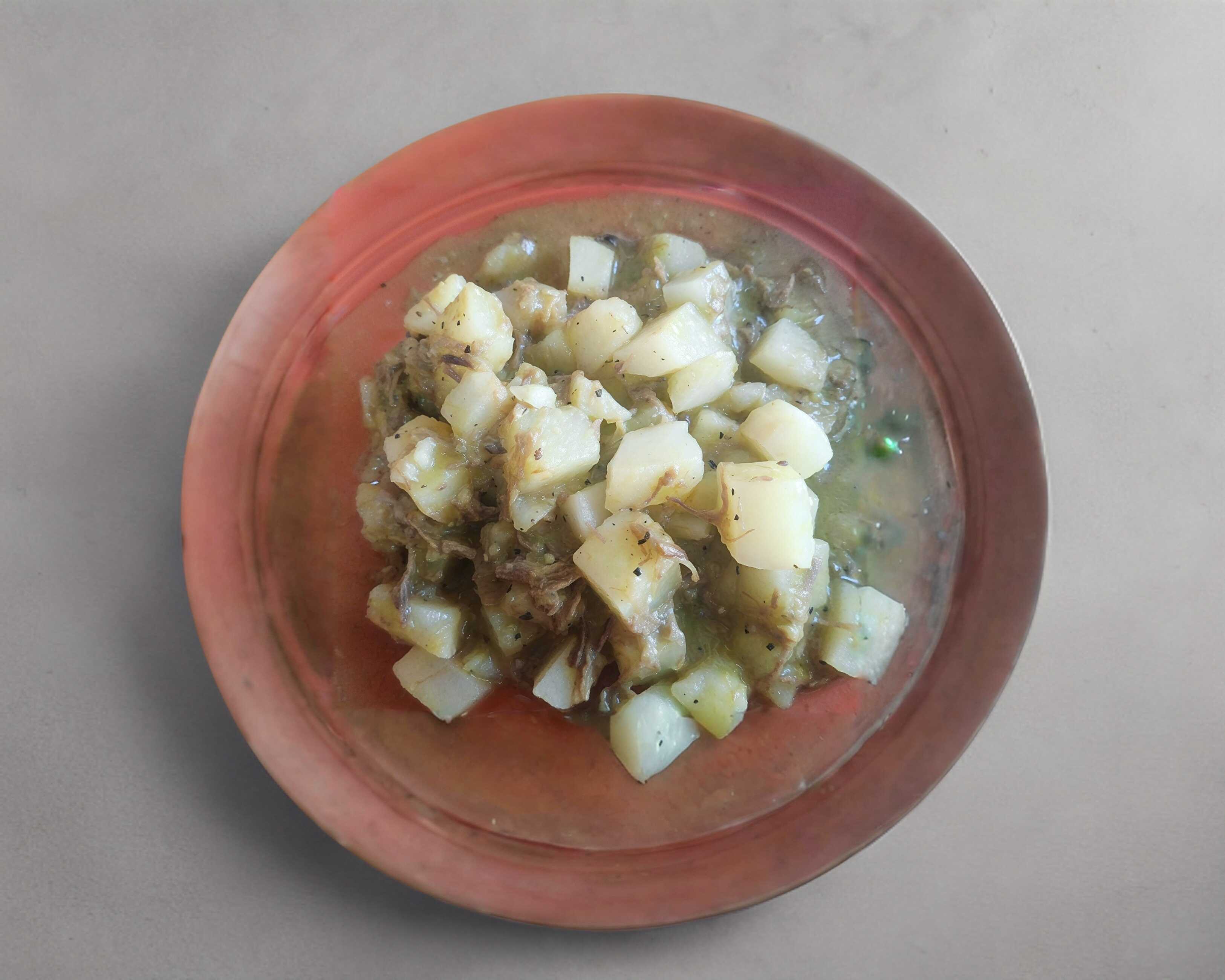 Papas guisadas en salsa y se le agrega queso