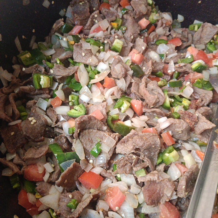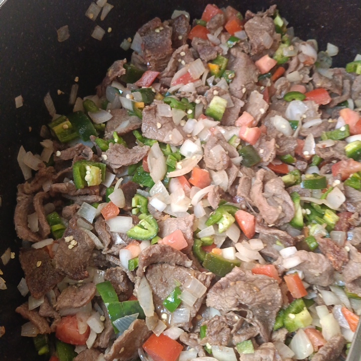 Pulpa de res con tomate, chile,y cebolla