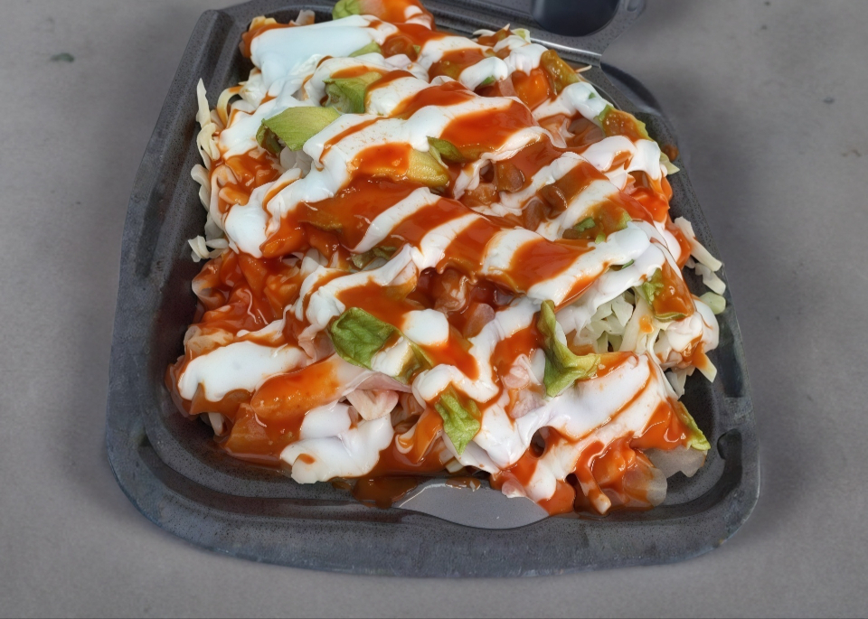 Repollo,Tomate,Cueritos, aguacate , limon ,crema, salsa valentina