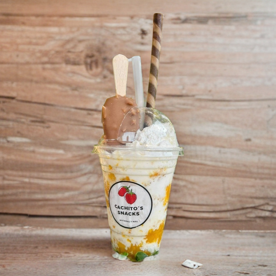 Fresas , crema, topping a elegir, bananera , vaso 14oz